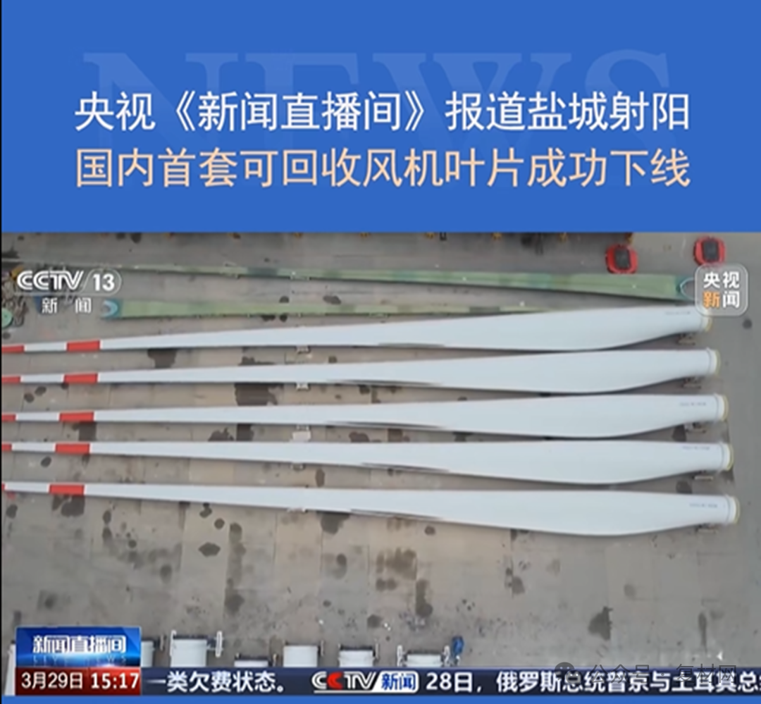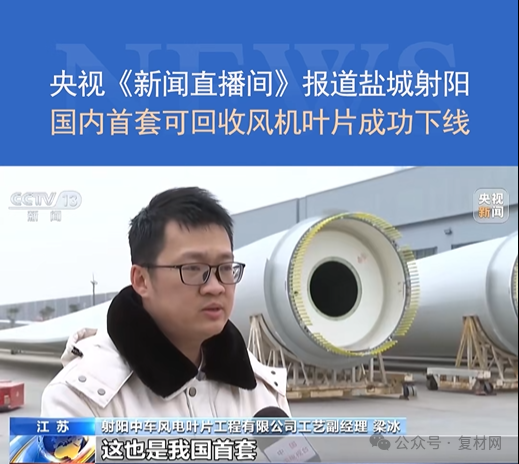 据射阳中车风电叶片工程有限公司工艺副经理梁冰介绍:这是我国首套可回收热固性树脂的风电叶片。